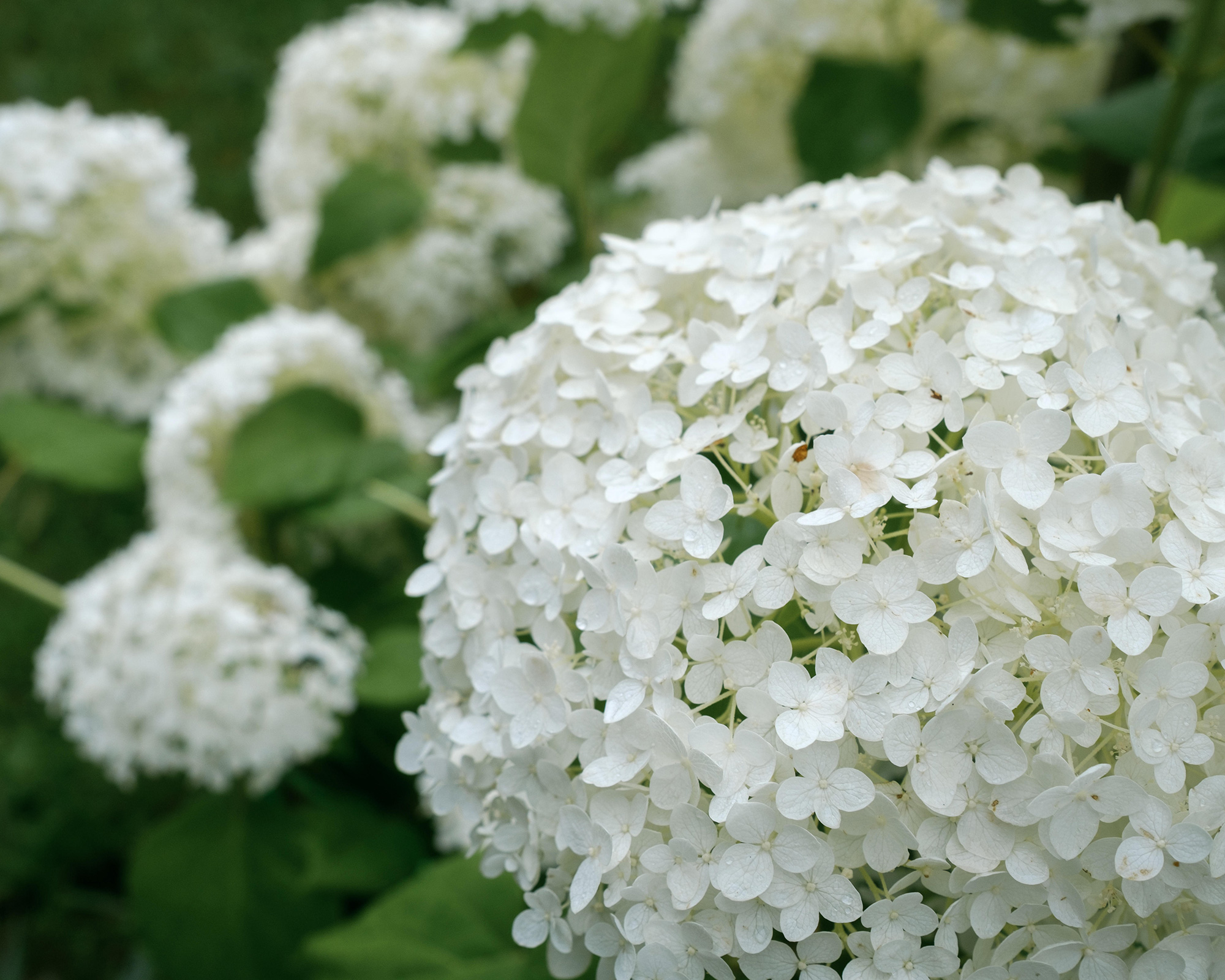 Proof that large flowers can look good in small gardens, this elegant deciduous shrub, native to North America, has gorgeous creamy white globe-shaped flowers on upright stems. As autumn comes, they turn pale lime green, and the seed heads can be left on during the winter months.