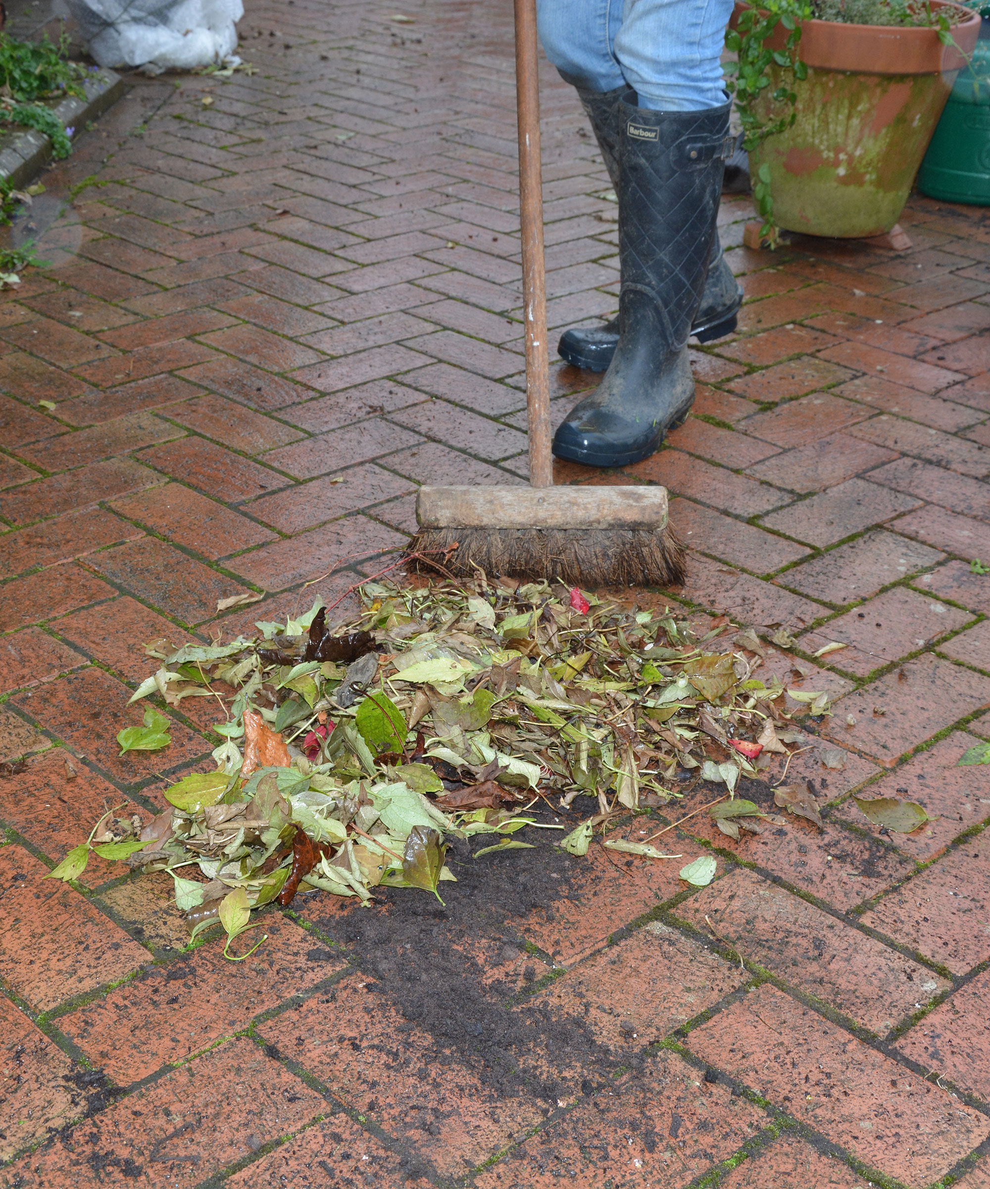 Sweeping up also removes damp places where pests and fungal spores shelter. Ignoring them and leaving them littering the patio or banked up against walls simply stores up potential problems for the future.