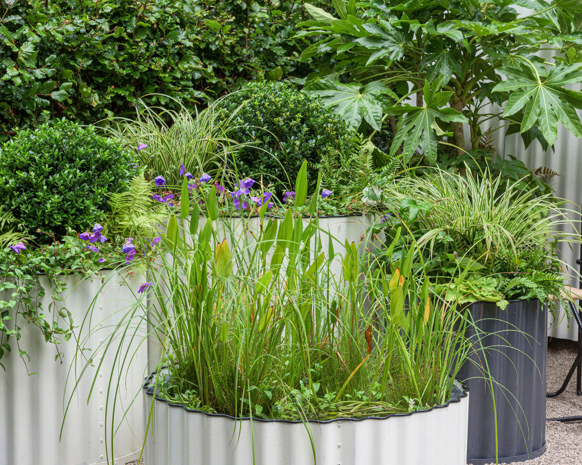 A small garden doesn't have to mean using only small plants, as The IBC Pocket Forest, designed by Sara Edwards, proves.